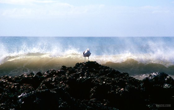 MARCH 2004 – A seagull stands on the rocks of Maitland Beach near Port Elizabeth, South Africa, while the waves … More