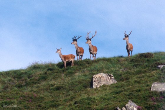 JULY 2005 – A group of deer watches the surroundings from the top of a hill that belongs to Glenmuick … More