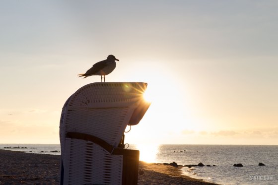 AUGUST 2025 – A seagull glances at the rising sun while standing on a beachchair in Grömitz, Germany. Photo © … More