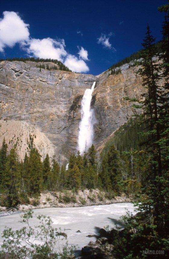 AUGUST 2002 – The giant Takakkaw Falls, situated within Canada’s Yoho National Park, on a sunny day. © Mark Zanzig/zanzig.com